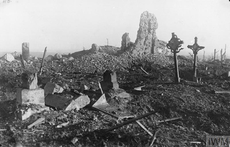 Note that the villages, while important as map references, were physically almost non-existent at this point. The ruins of villages were often fortified, and they attracted a lot of artillery fire as map references (as did the woods in the area) but they did little in terms of blocking line-of-sight or affecting movement. The image of the village of Gheluvelt from the time gives a good sense of this: