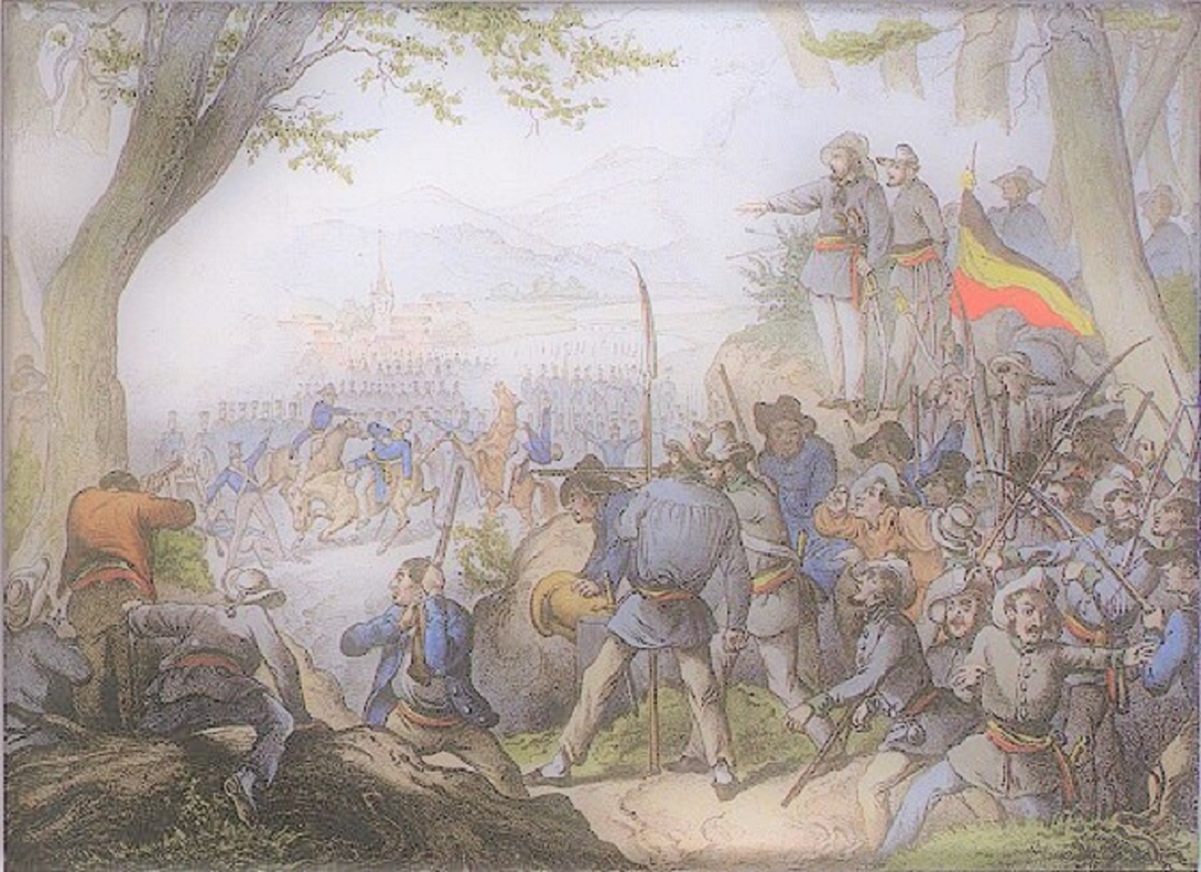 1848!A Miniatures Wargame of 19th Century Revolution![]() The Battle of Kandern during the Hecker Uprising of April 1848 in Baden 1848! is a game system for recreating the many revolutions which took place during the "year of revolutions" using tabletop miniatures. Designed to be played with 25mm/28mm miniatures, it is similar to many popular skirmish-level games, but has some significant differences as well. The biggest of these is that it is played using a PC, tablet, or smartphone. A game master runs the games interface on the device, and is in charge of playing all of the government forces - players take the part of revolutionary leaders, struggling against their absolutist oppressors. The democratic revolutions which swept Europe during the years 1848 and 1849 are a fascinating historical subject, but - aside from such conflicts as the 1st Italian War of Independence and the Hungarian War of Independence - do not provide subjects which lend themselves well to traditional types of historical miniatures wargames. Revolutionary struggles are often characterized by relatively small numbers of ill-equipped troops facing much larger numbers of government soldiers, who are better trained and supplied. The one-sided nature of such struggles does not lend itself well to competitive play. As a result, they have often been neglected by wargamers, while other 19th century European conflicts such as the Franco-Prussian War have grown in popularity. 1848! uses a different approach to simulating these revolutions on the tabletop. Players - while competing against the game system and each other - are not playing forces on opposing sides. Instead, they take the part of one of the leaders of the many historical uprisings occurring during this period, such as Garibaldi in the siege of Rome, Frederich Hecker in the Baden Revolution, etc. They must try to raise the citizenry in the name of their cause, and to incite the government troops to mutiny. Government supplies, documents, and money must be siezed, and political prisoners freed. The use of a simple computer-assisted games interface allows for external events to have a significant impact on play, offering participants many opportunities to further the revolutionary cause, but presenting them with corresponding threats as well. Against this background, game masters can design scenarios as for other games systems, giving the players an overall objective against a known enemy force ("Storm the Palace!"). Unlike traditional computer-assisted miniatures systems, the games interface is simple, designed to be run on a tablet or smart phone. It has a single screen, which is easy to learn and operate. Once players understand the basics of the game, it is extremely quick to learn, being similar in general terms to paper-and-dice games with which most players will be familiar. ![]() The games interface is simple to learn and operate The game is designed for a game master and one to three players, but it scales well for convention and club play - larger games can simply employ an additional game master running the games interface on a second device. Because it pits players against the device, it is also a good system for solo play. As a period to wargame, the 1848 revolutions are excellent, offering a wide range of colorful uniforms and troops in a number of different settings. At the same time - falling in the period between the Napoleonic Wars and later European conflicts like the Crimea, the Franco-Austrian War, the Austro-Prussian War, and the Franco-Prussian War - many miniatures for both earlier and later conflicts can be used. Some popular periods such as the American Civil War also offer figures which accurately depict 1848 revolutionaries and their foes. Because 1848! uses a relatively small number of figures (around 100 figures is enough for all but the largest games) it is easy to get into the period without spending a fortune. Individual basing allows the same figures to be used for other popular skirmish games for the period such as Sharp Practice, too. 1848! is available as a free web app, which will run on any browser which has a Javascript-enabled web browser. The rules and guidelines for play can be found here. The games interface is available here. For those wishing to use the system offline, both rules and games interface are available as a .ZIP file. Comments and bugs can be sent to the author. | |||