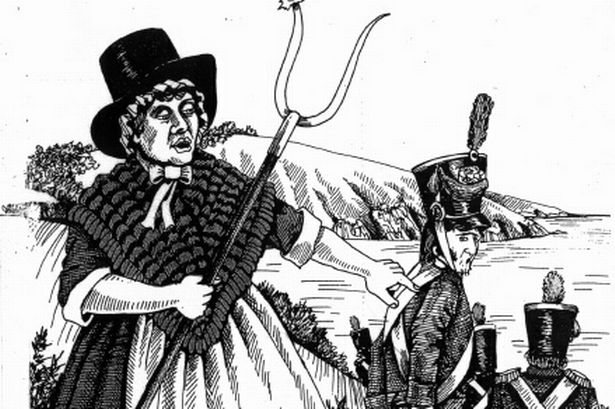 Nominee 6: Jemima Nicholas (aka Jemima Fawr)Wargamers all know of the Battle of Hastings 1066, recreated innumerable times in miniature on the gaming table. And all of them will have seen pictures from the famous Bayeux Tapestry, a depiction of the entire Norman invasion. As we all know, the invasion was a success, and is sometimes cited - incorrectly - as the last invasion of Britain. (You can quibble about the terms - the Channel Islands are part of the British Isles, apparently, but not part of Britain. And landings in Ireland don't count - the UK is called "The United Kingdom of Great Britain and Northern Ireland" for a reason.) But on 23 February, 1797 the French landed near Fishguard on the coast of Wales, where they were soundly defeated. Figuring largely in the story of their defeat was a woman named Jemima Nicholas, subsequently dubbed "Jemima Fawr" ("Jemima the Great" in Welsh). She was a resident of Fishguard, and the wife of a cobbler. Here she is, in a typically non-historical depiction (the shako wasn't in use by the French in 1797).