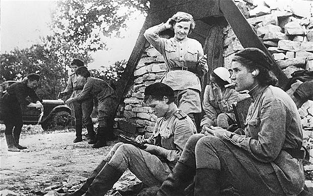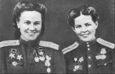 The 588th Night Bomber Regiment (or "Night Witches") is also an interesting subject. They flew throughout the war, from 1942 all the way through the Battle of Berlin. By the end of the war, they had flown 24,000 missions (be careful with this number - I have heard this is the total number of sorties flown by women in the Soviet Air Force, elsewhere) with an active complement of 40 flight crews at its largest. Both the flight- and ground-crews were all-female. The pilots and navigators must have been extremely brave. To quote Wikipedia: "The Women's Regiment flew exclusively at night; their planes, which were not equipped with guns, radios, radar, or parachutes, would incinerate immediately if hit with even minimal ordnance." They lost 30 flyers over the course of the war. Here is Nadia with some of her fellow Night Witches, waiting for darkness to fall (she is the one standing):