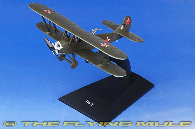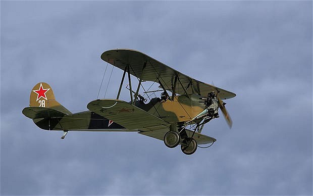 The Polikarpov Po-2 is an interesting aircraft. Originally used for crop-dusting and similar non-military tasks, it is possibly the most-produced biplane ever. It was lightly armed and carried a tiny payload, flying at incredibly low altitudes and doing so very, very slowly (it is said that the Messerschmitt Bf 109 and Focke-Wulf Fw 190 had a stalling speed equal to the maximum speed of the Po-2, making it difficult for German pilots to keep them in the gun-sights). The engine made a distinctive noise, and they were known for causing the German troops to lose sleep, a function described as "psychological warfare." They were used in the Korean War as well, and the aircraft has the distinction of being the only biplane ever credited with a jet kill: an F-94 Starfire slowed to 110 mph in order to catch one, and consequently dropped from the sky. Here is the Polikarpov Po-2: